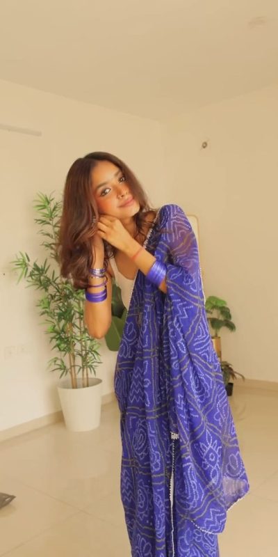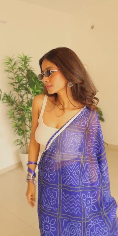 Blue Soft Georgette Silk Bandhani Design Saree
