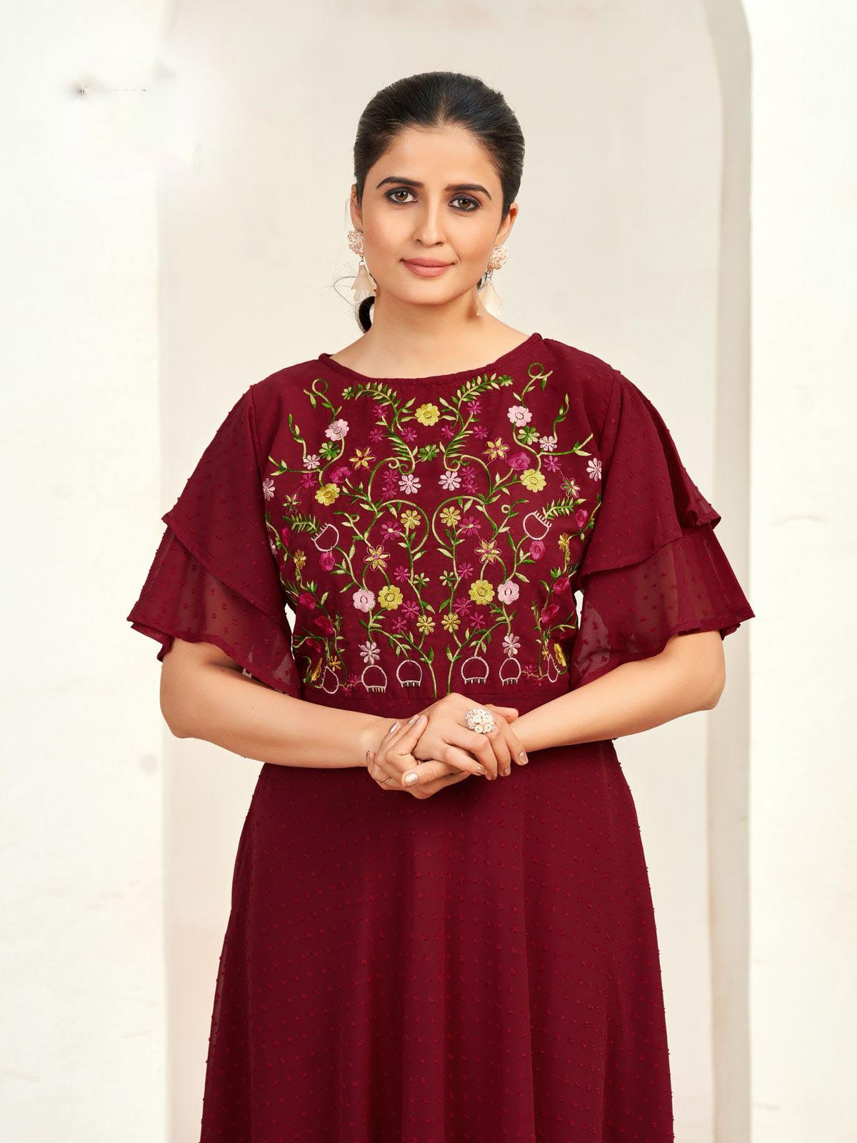 157 reviews for Maroon Georgette Butti Embroidery Thread Work Gown