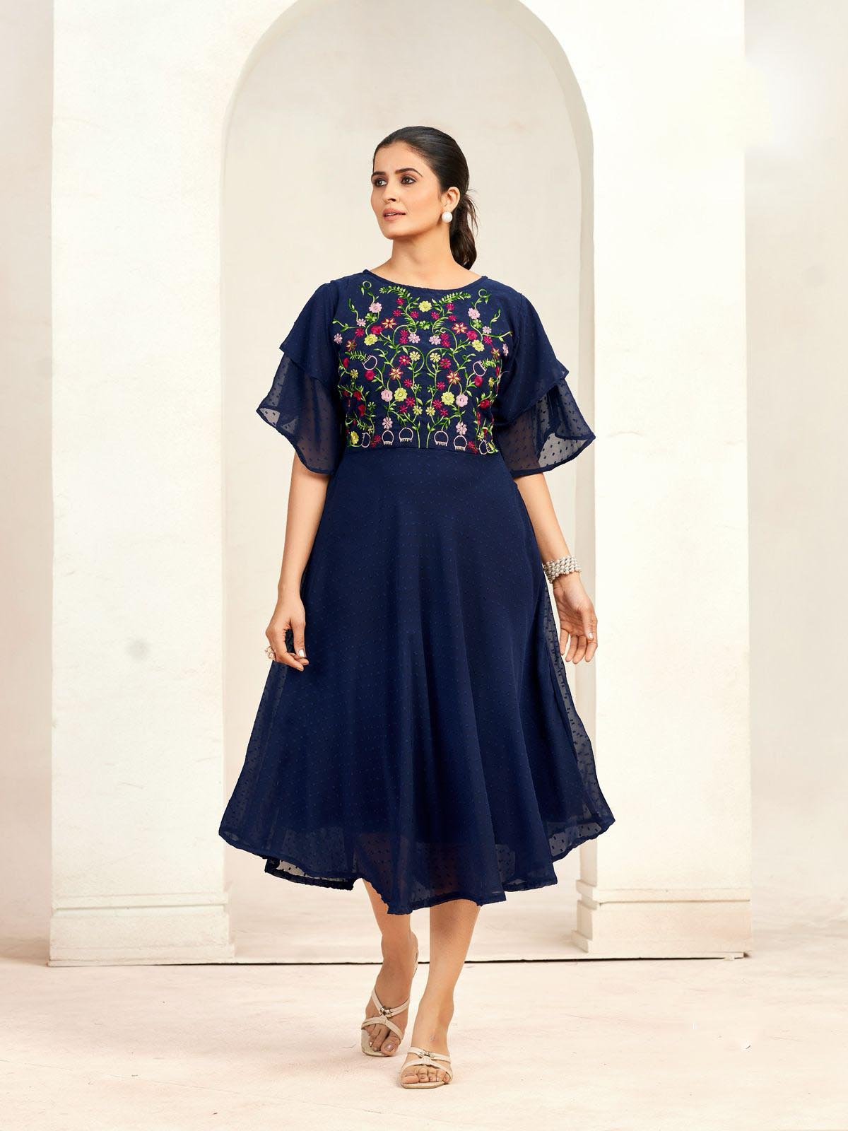 189 reviews for Navy Blue Georgette Butti Embroidery Thread Work Gown