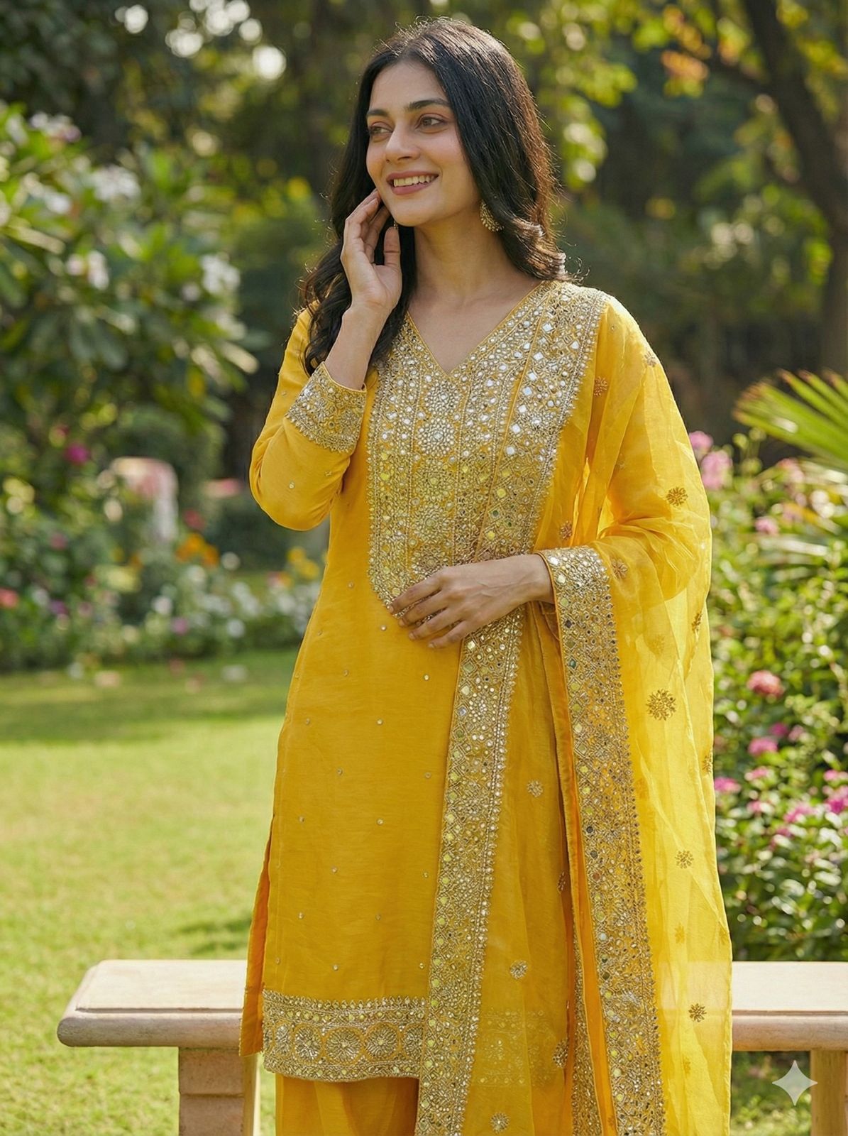 JF 040 Yellow Fendy Silk Salwar Suitwith Embroidery Work & Lace Work. Now at just ₹2049. Delivery 4-6 Working Days. Shop now. | Jump Suits, Salwar suit, Casual Suits, Creative suits, Designer Suits, Palazzo Suits, Party Wear Suits, Patiala Suits, Straight Suits