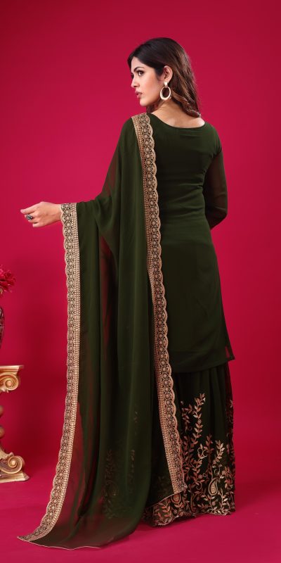 Bottle Green Faux Georgette Embroidery Sequence Work Salwar Suit - Image 4