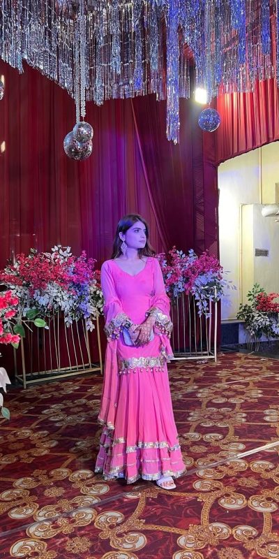 Top Inner : Heavy Micro Cotton Palazzo Fabrics : Pure Heavy Chinnon Silk With fancy Lace With Fully Flair Dupatta Fabric : Pure Heavy Chinnon Silk With Embroidery Sequences Work and fancy Lace Border |