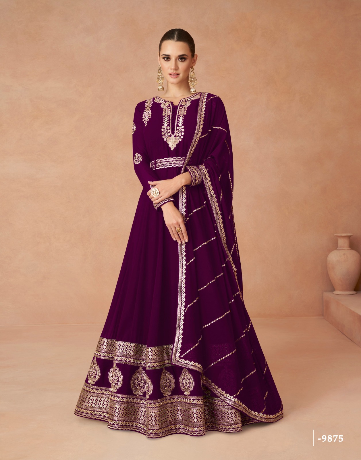 126 reviews for Wine Faux Georgette With Embroidery Work Anarkali Gown