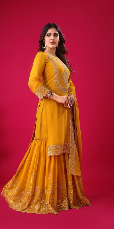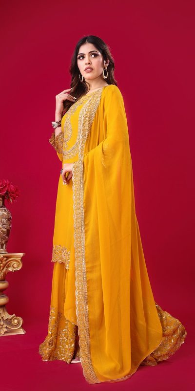 Yellow Heavy Georgette Attached Pad Salwar Suit