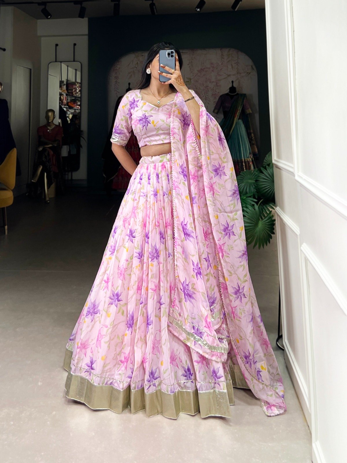 Baby Pink Tabby Silk Lace Work Lehenga Choli