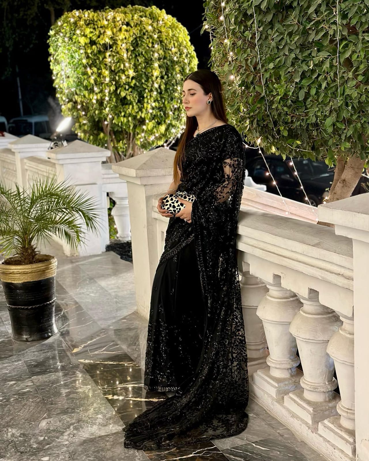 3. “The georgette saree’s flowy silhouette is mesmerizing. It adds a touch of glamour without compromising on comfort.”