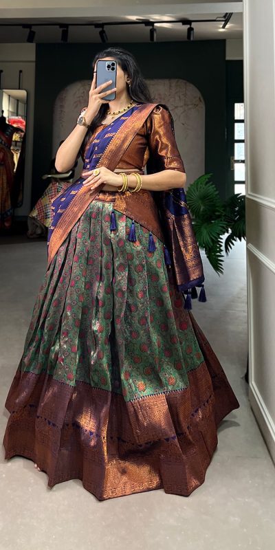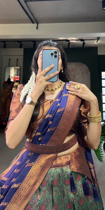135 reviews for Navy Blue Silk Jacquard Zari Weaving Work Lehenga Choli