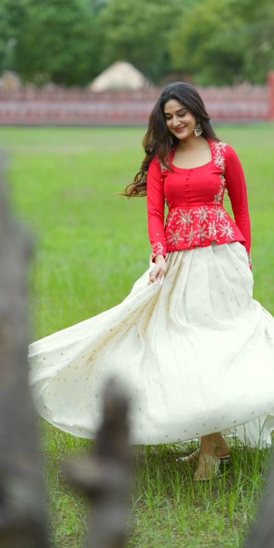137 reviews for White And Red Chinon Thread Sequence Lehenga Choli
