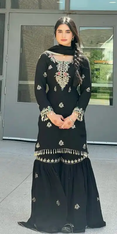 Black Chinon Silk Sequence Embroidery Work Salwar Suit