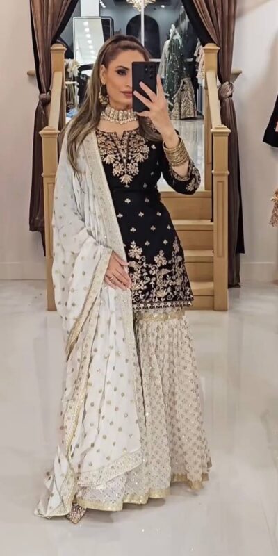 Black Fox Georgette Embroidery Lace Work Salwar Suit
