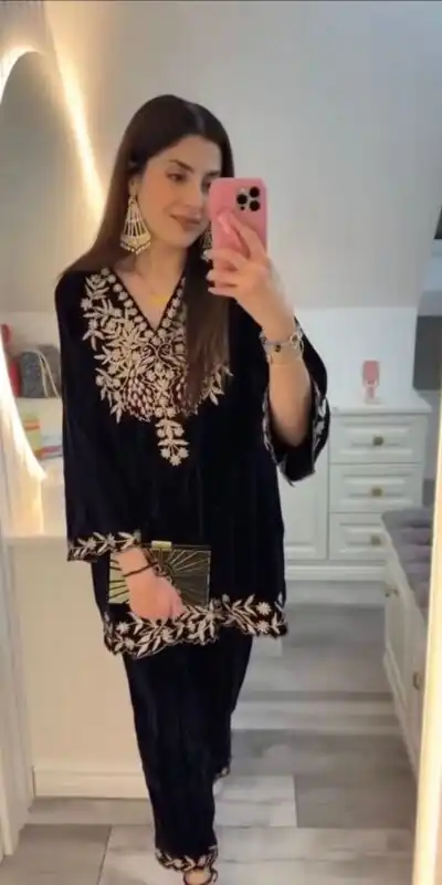 The salwar suit is beautiful and fits well. The material is high-quality, and the embroidery is exquisite. Perfect for any event.