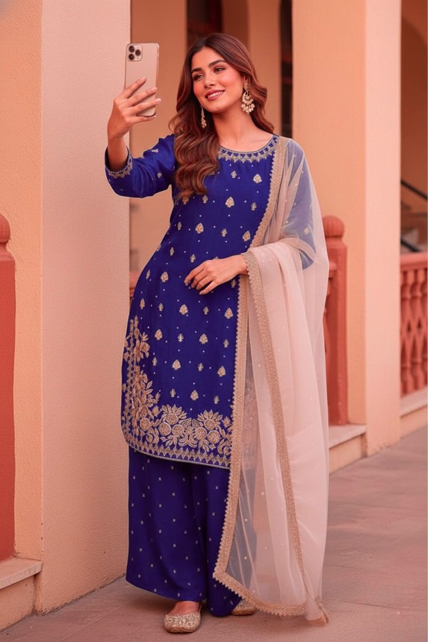 Blue Zimmy Silk Embroider Work Salwar Suit