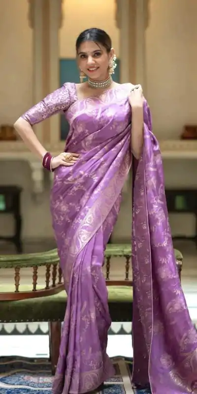 Bright Purple Color Soft Litchi Silk All Over Weaving Saree