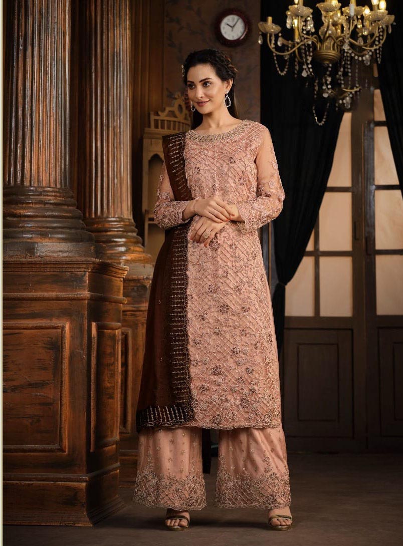 Peach Net With Coding Sequence Work Salwar Suit