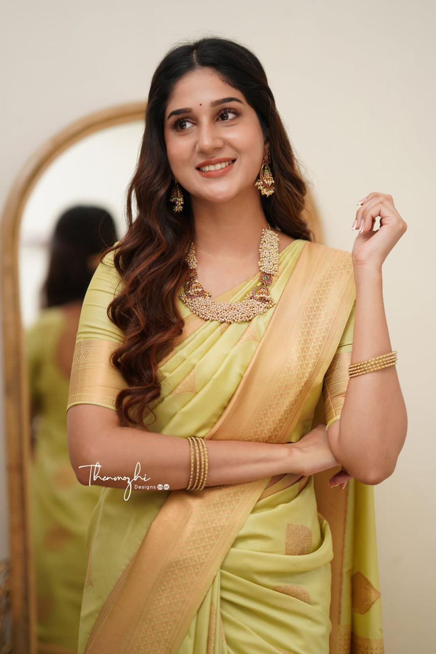 Classic Pista Lichi Silk Jacquard Work Saree
