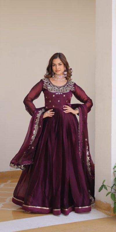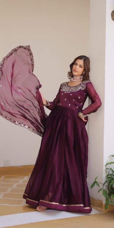Wine Silk Sequence Work Gown
