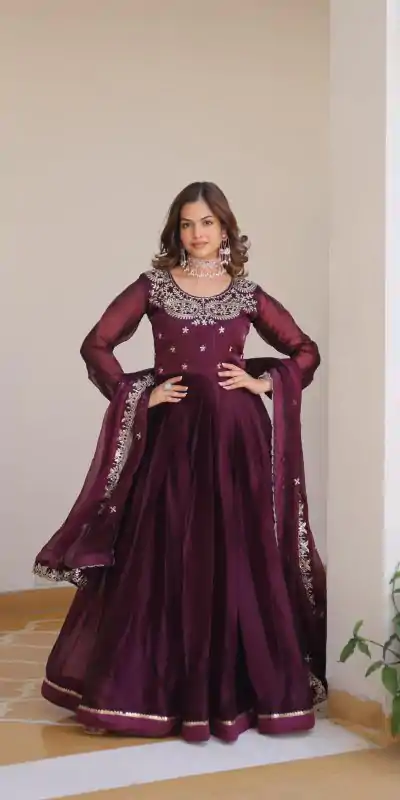 Fabrics | Gown Fabric :- pure Burberry silk Work :- Heavy sequence Embroidery Work with readmit less Inner :- Micro Cotton Flair :- 3.5mtr Size :- Free Size Semi Stitched (Fully Stitched)Dupatta Fabric :- pure Burberry silk Work :- Heavy sequence Embroidery Work Size :- 2.30 Meter |