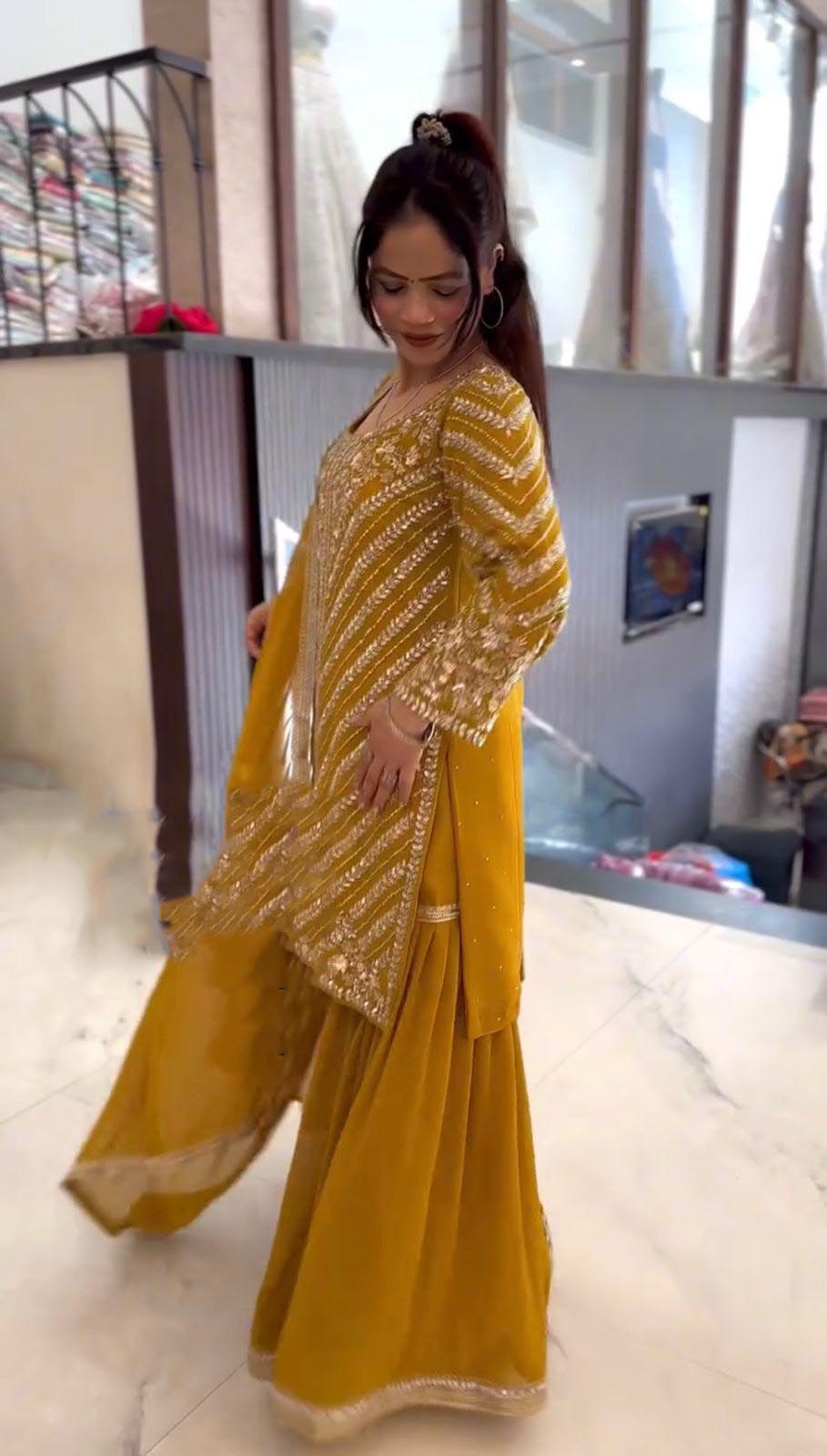 117 reviews for Yellow Faux Georgette With Embroidery Sequence Work Salwar Suit