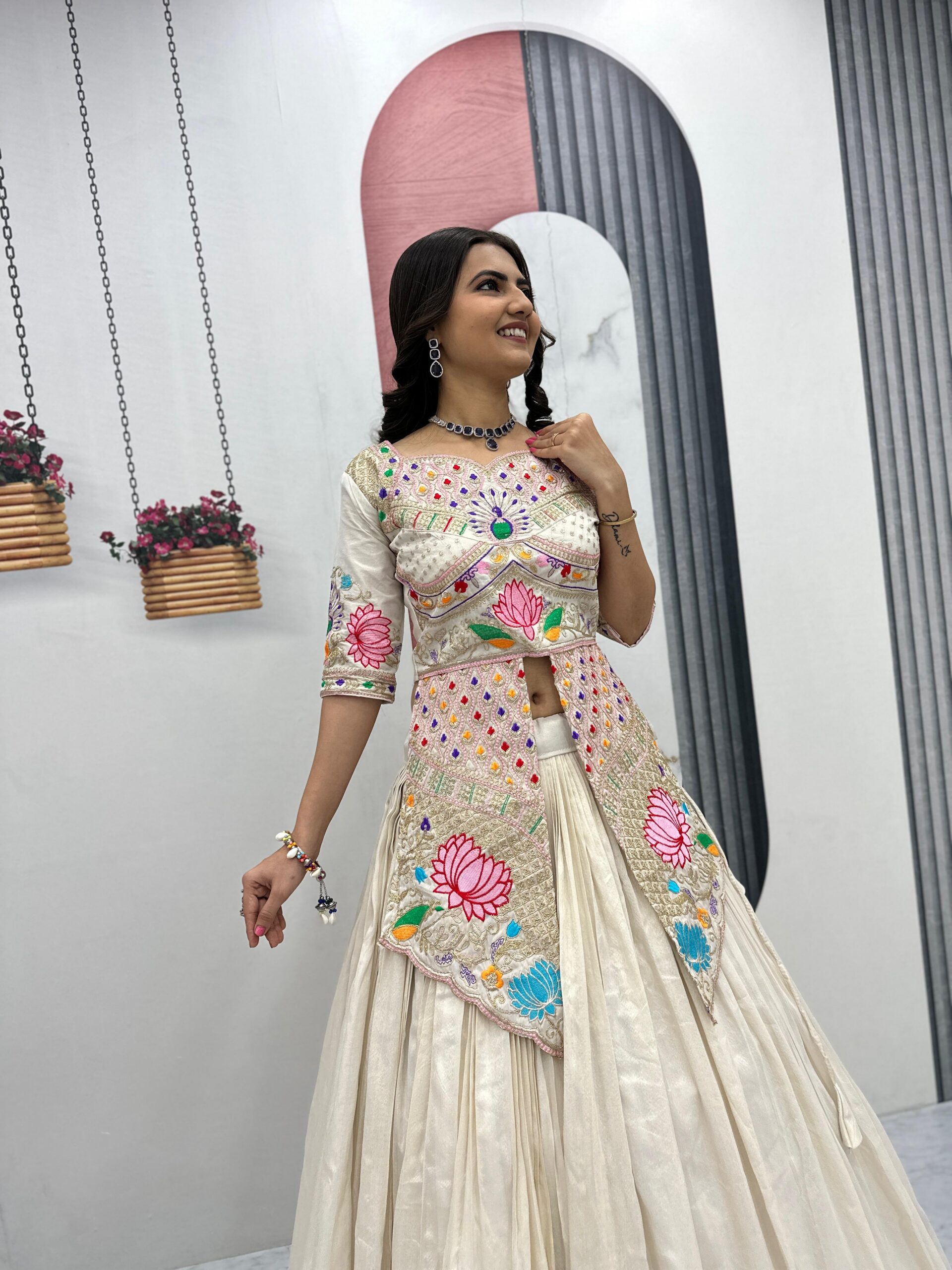 Cream Simar Cosmos Embroidery Work Lehenga Choli