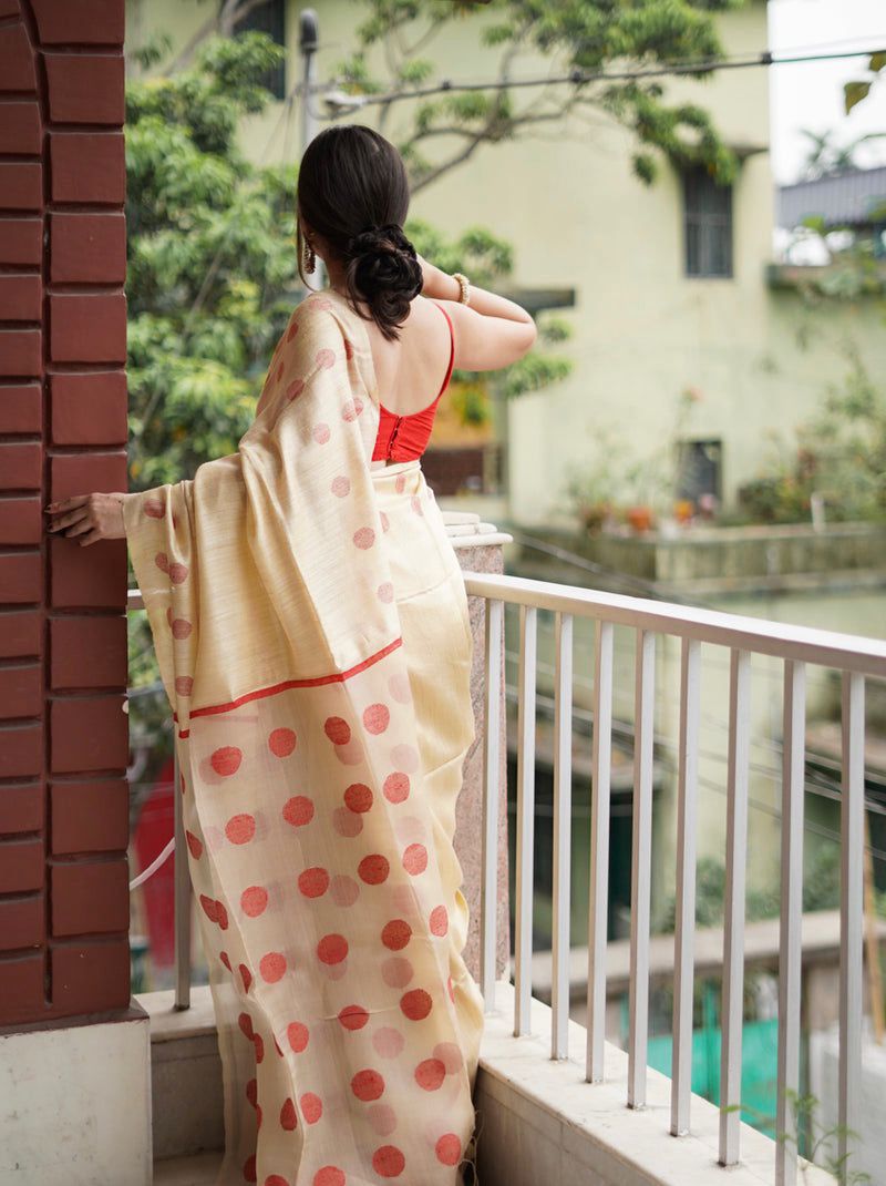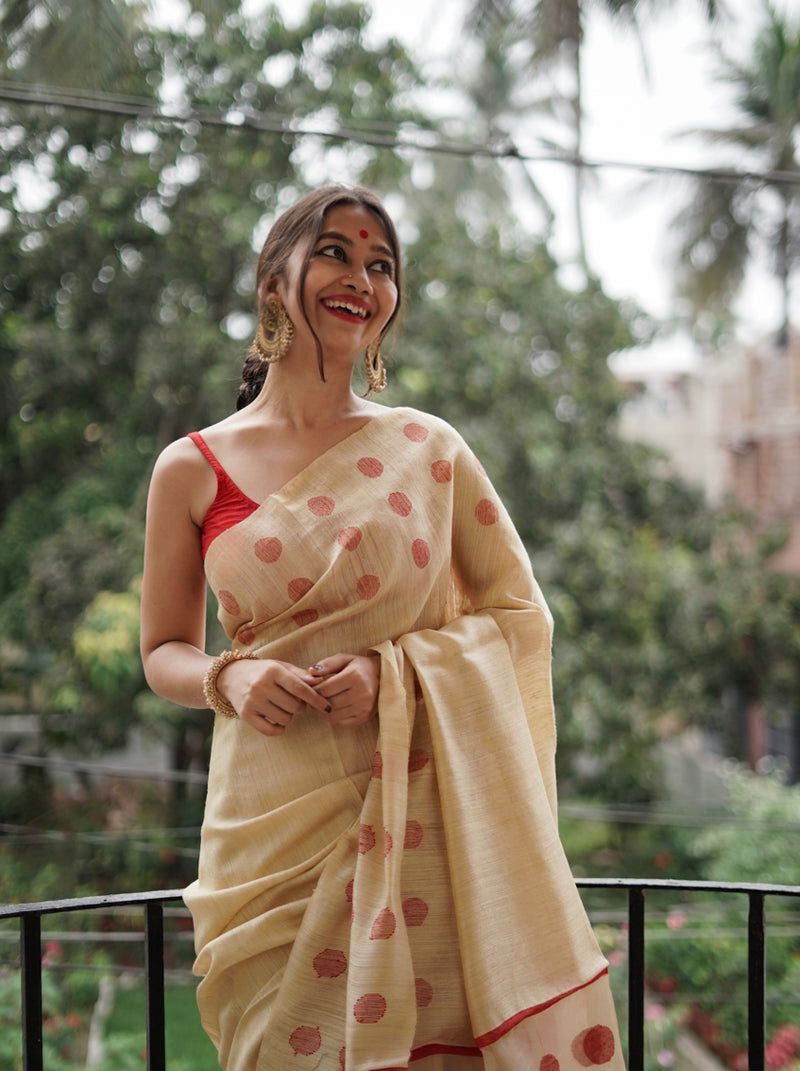 Cream Soft Lilan Weaving Work Saree
