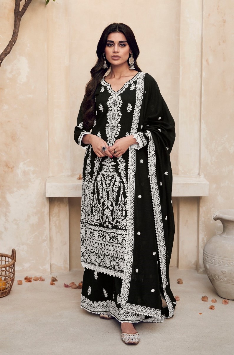 Black Heavy Vichitra Embroidery Sharara Suit