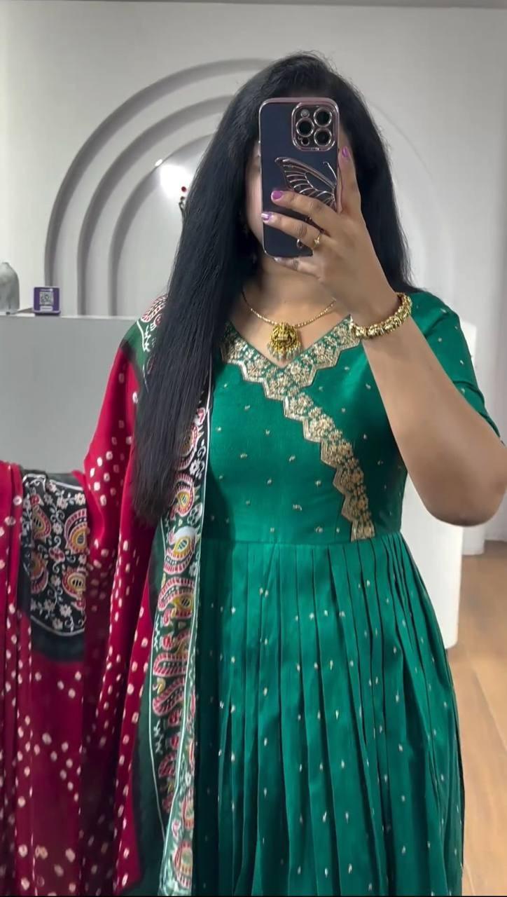Β FabricsΒ | Gown Fabric :- Heavy Chinon Work :- Heavy Embroidery Thread & Sequence Work Inner :- Micro Cotton Length :- 55/56 Size :-Free Size Semi Stitched (Fully Stitched)Dupatta Fabric :- Chinon Work :- Digital Print Size :- 2.30 Meter |