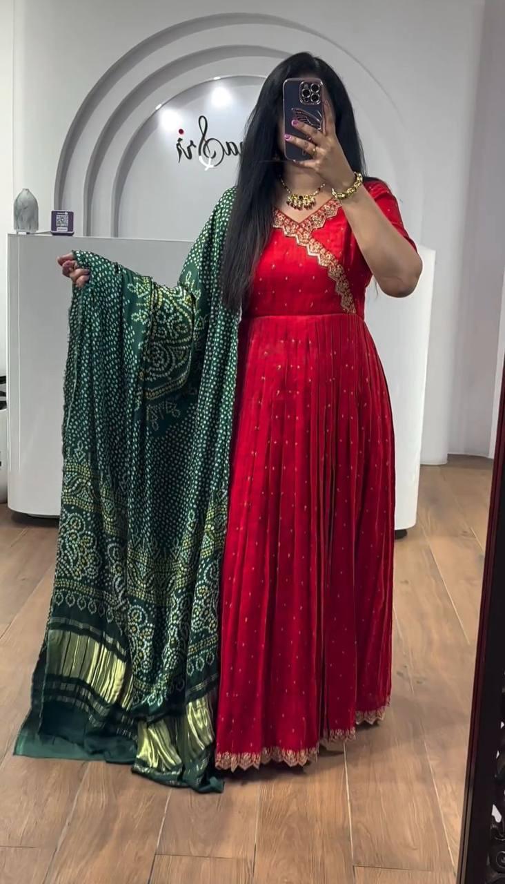 209 reviews for Red Chinon Thread Sequence Work Gown