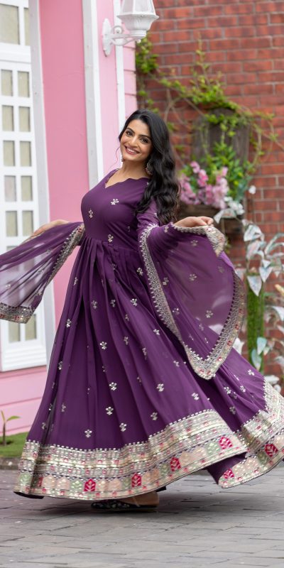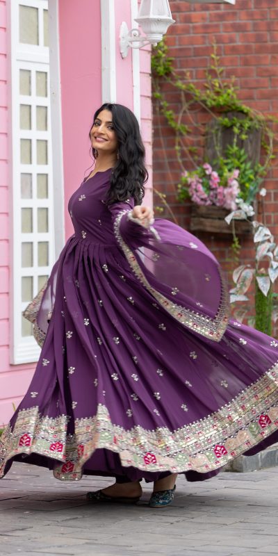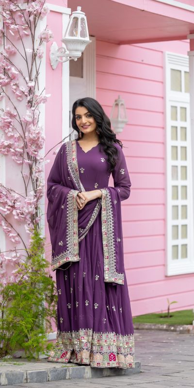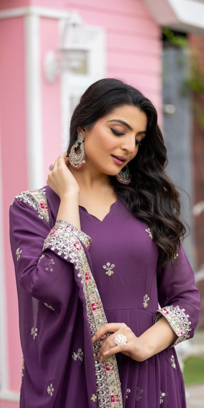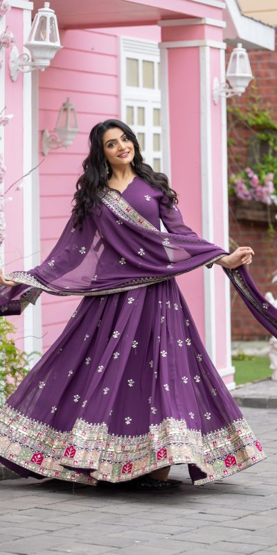 117 reviews for Purple Faux Georgette With Embroidery Sequence Work Anarkali Gown