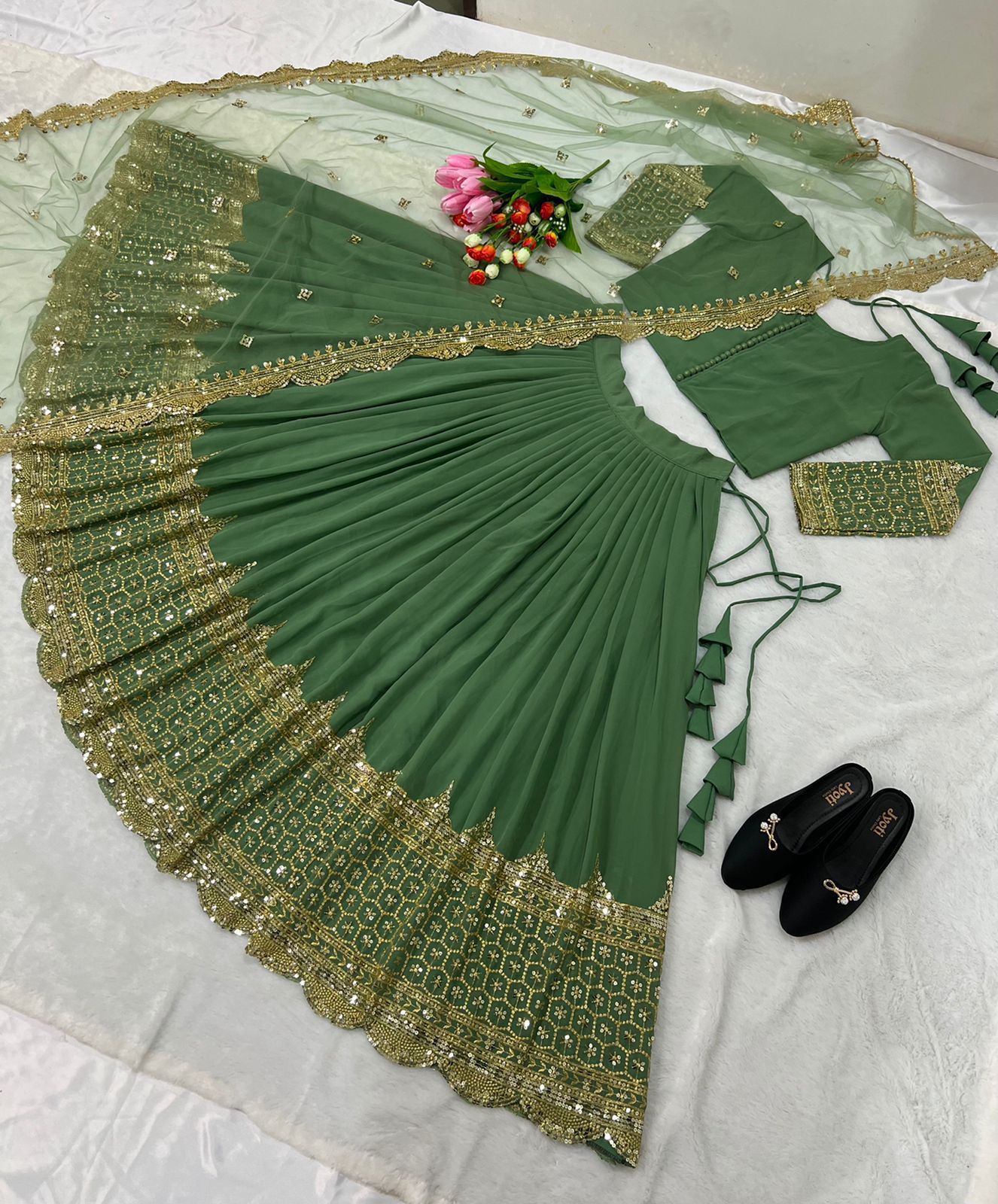 Fancy Light Green Color Georgette Embroidery Lehenga Choli