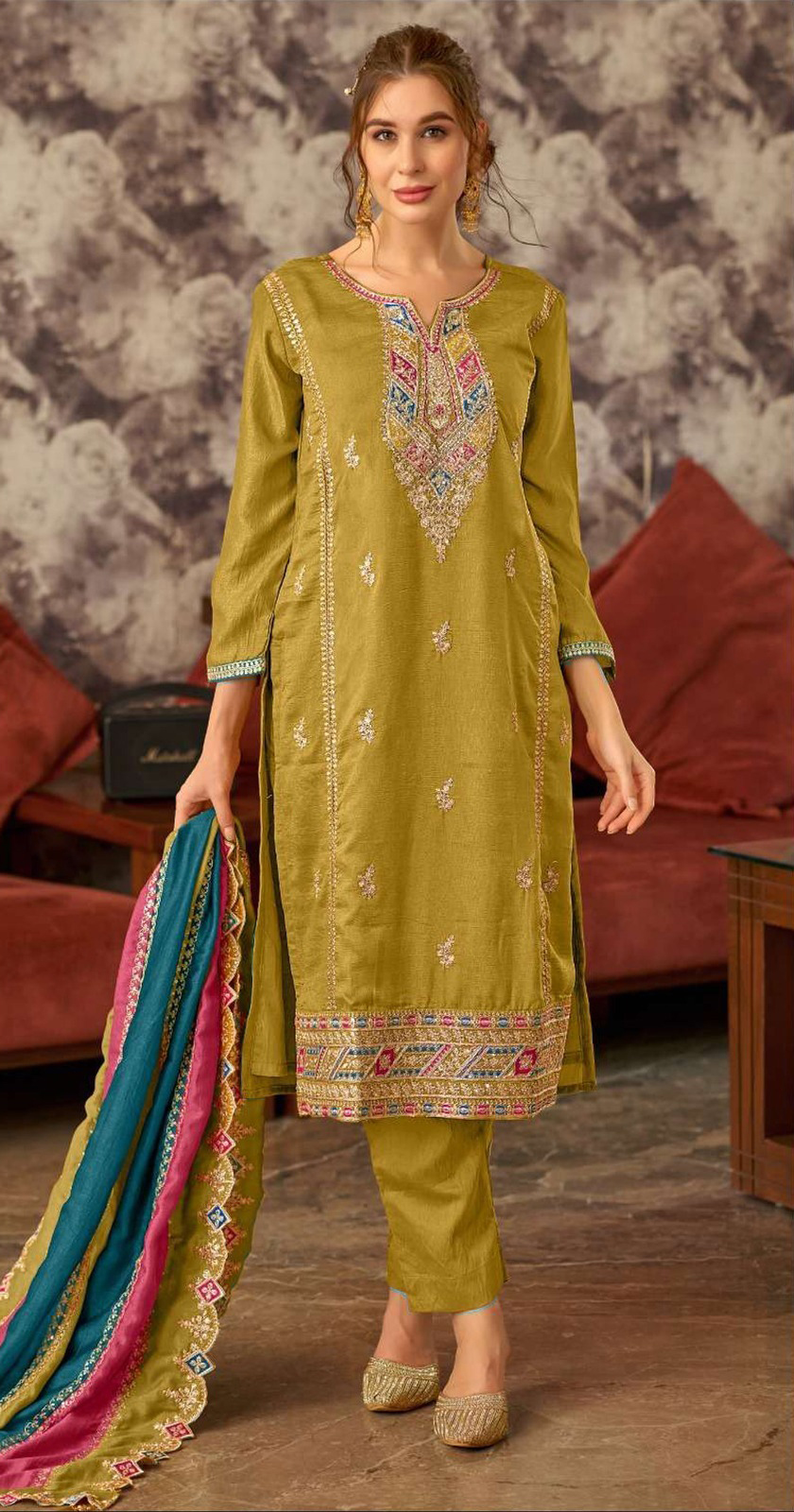 Mustard Vichitra Embroidery Codding Sequence Salwar Suit