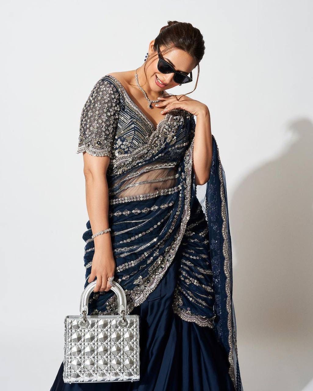 Navy Blue Vichitra Embroidery Lehenga Saree