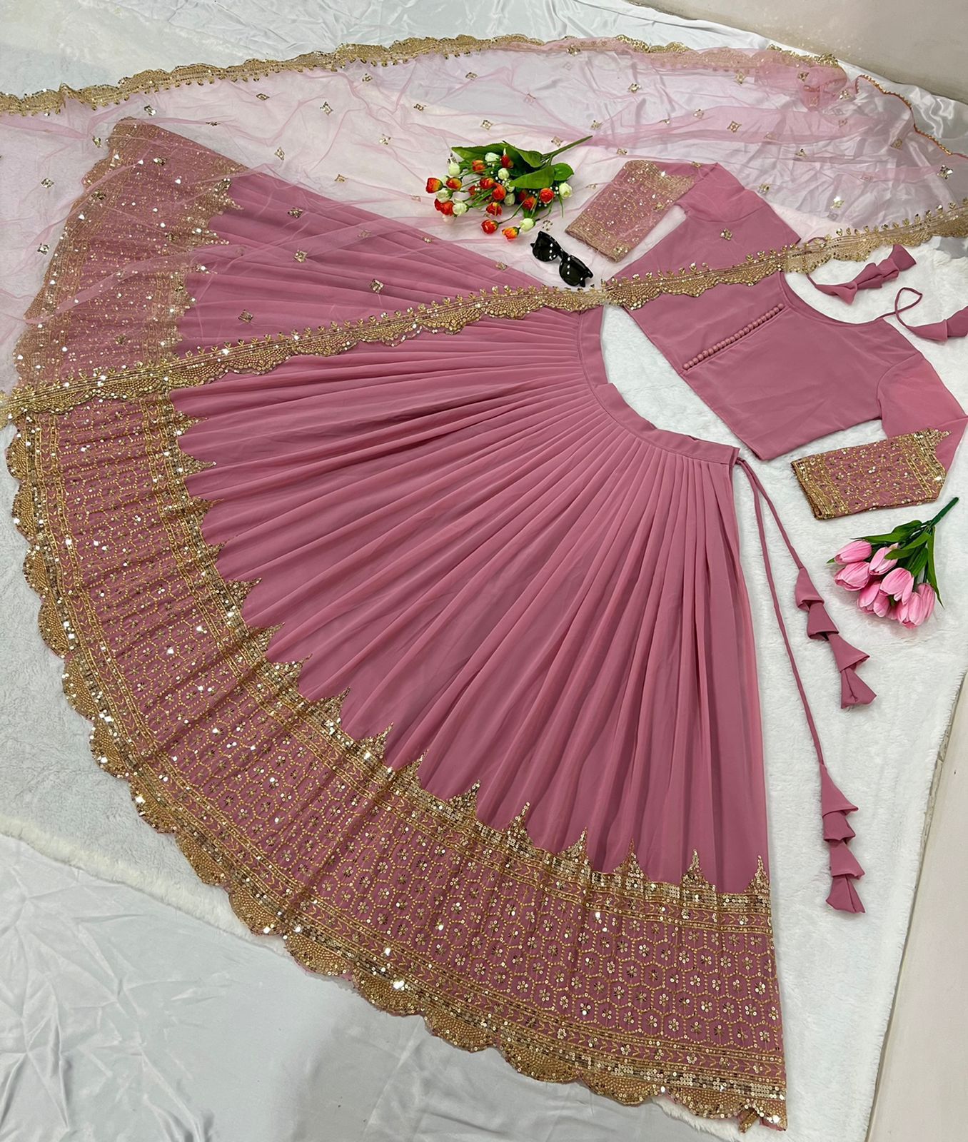Beautiful lehenga! The design is intricate, and it fits perfectly.