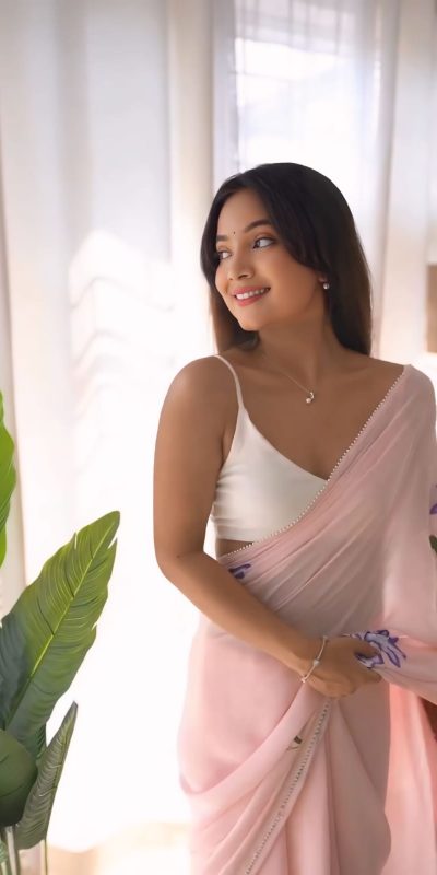 Fabrics | Saree Fabric : Pure Soft Georgette Silk Design : flower design on all over the body and pallu design with lace border with pari work. Ready To Wear Saree color combination All over the body Blouse : Same model white color banglory silk running unstitched blouse piece |