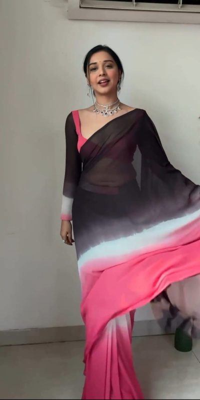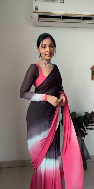 Black and Pink Soft Georgette Silk Ready To Wear Saree