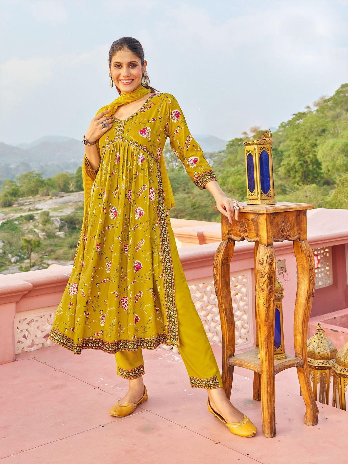 Fantastic Yellow Color Rayon Alia Cut With Embroidery Work Kurti