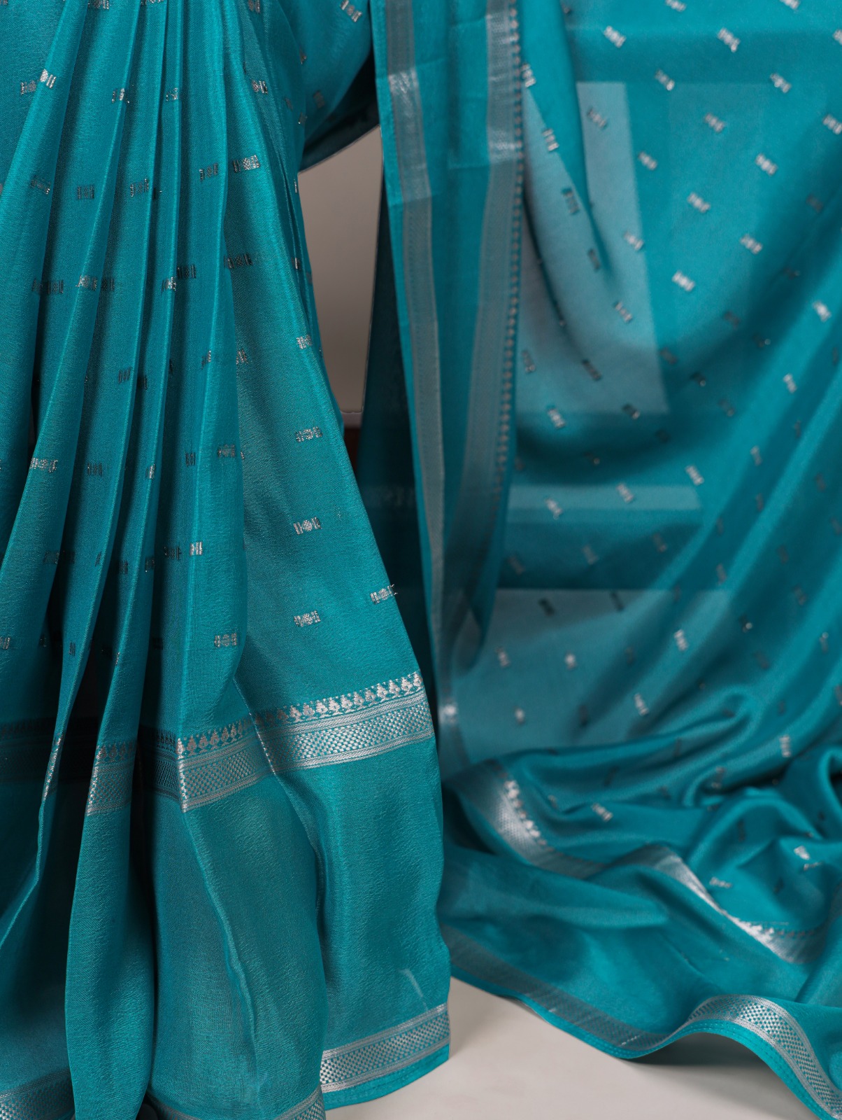 Firozi Crepe Weaving Work Saree
