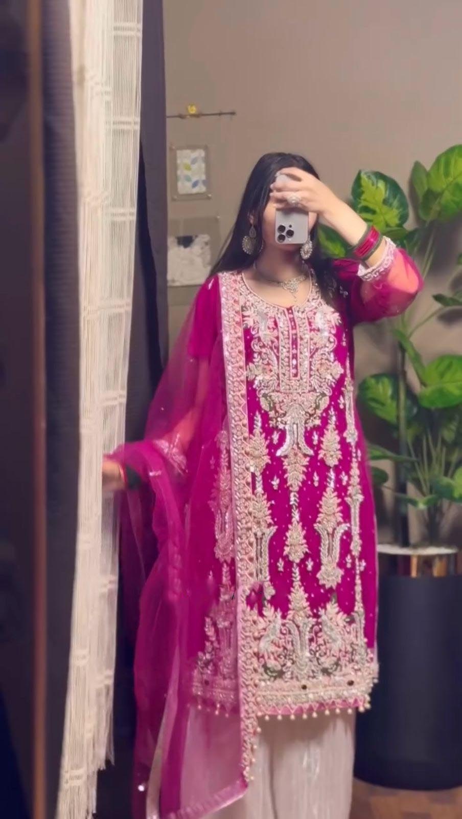 Pink Fox Georgette Sequence Embroidery Work Pari Lace Salwar Suit