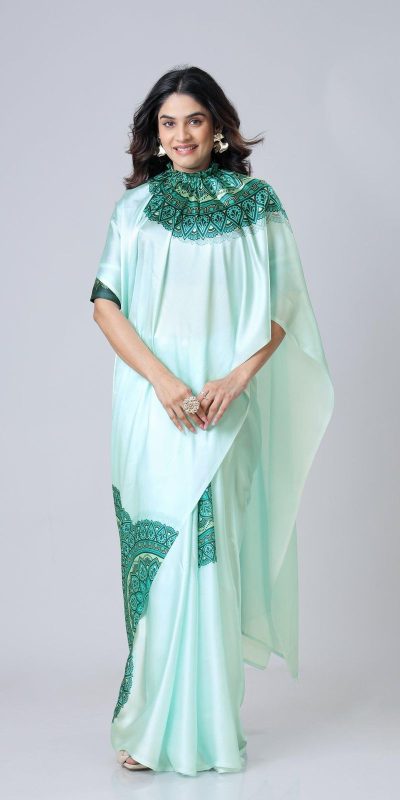136 reviews for Sea Green Japan Satin Digital Print Work Saree