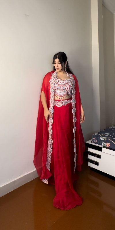 | Fabrics | Blouse fabric : Georgette Work : Sequence Embroidery Work With Diamond On Front Multi Color Crystal Latkan Lace On Border Inner : Micro Height: 15.5”inch Size : Free Size Full stitched Skirt fabric : georgette (Free Size) Work :sequence Embroidery Work Height : 46”inch Koti fabric: Georgette |