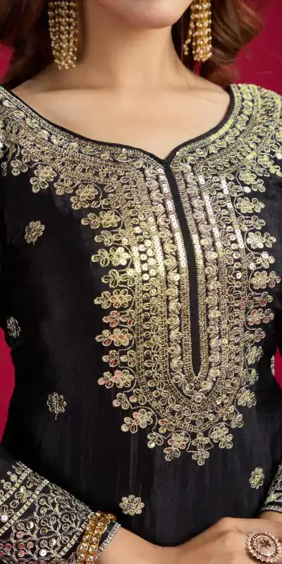 Black Chinnon Silk With Embroidery Work Sharara Suit