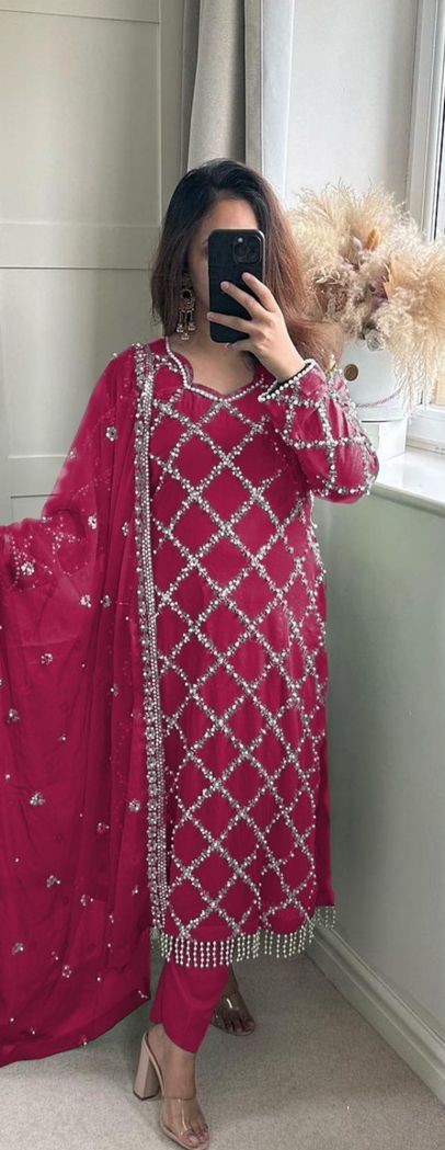Work : Real Hand Work Sequence Embroidery Work Fancy Sleeve Moti Lace Work Inner : Micro Height : 48”inch Pent Detail : Fox Georgette Pent Size : Free Size (Full stitched) Height : 38”inch Dupatta : Fox Georgette With Sequence Embroidered And Real Hand Work Dupatta (2.3mtr) |