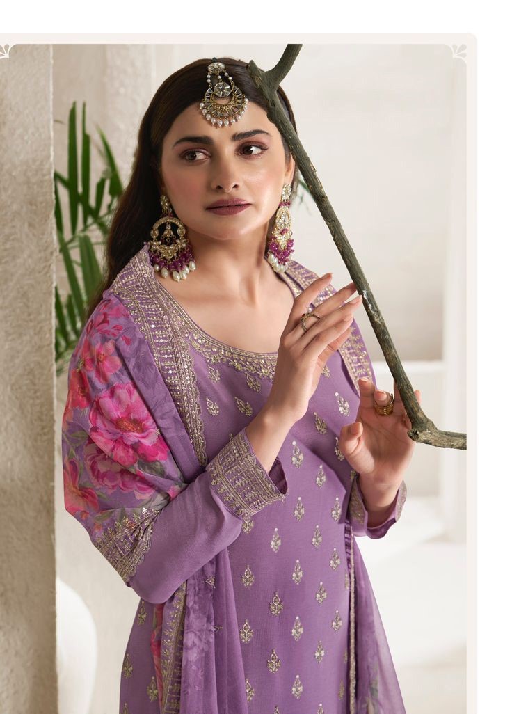 Purple Viscose Chinon Embroidered Sequence Salwar Suit