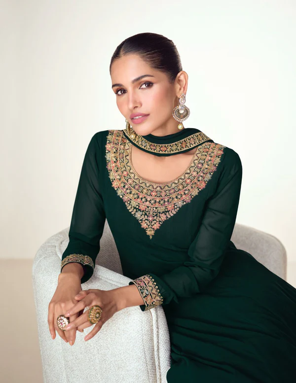 Fabric Details : Top : Blooming Georgette Embroidery Work (Stitched) Sleeves : Blooming Georgette Embroidery Work Inner : Santoon Attached with top Size Detail: Top Length : 55 Inches Dupatta : Blooming Embroidery Work Four Side Lace |