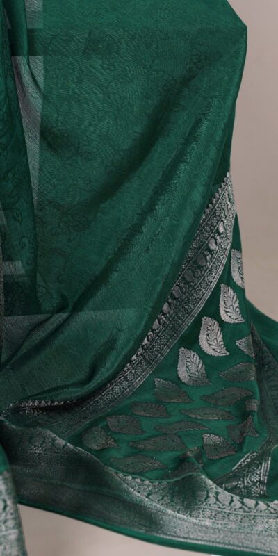 Green Chinon Zari Weaving Work Saree