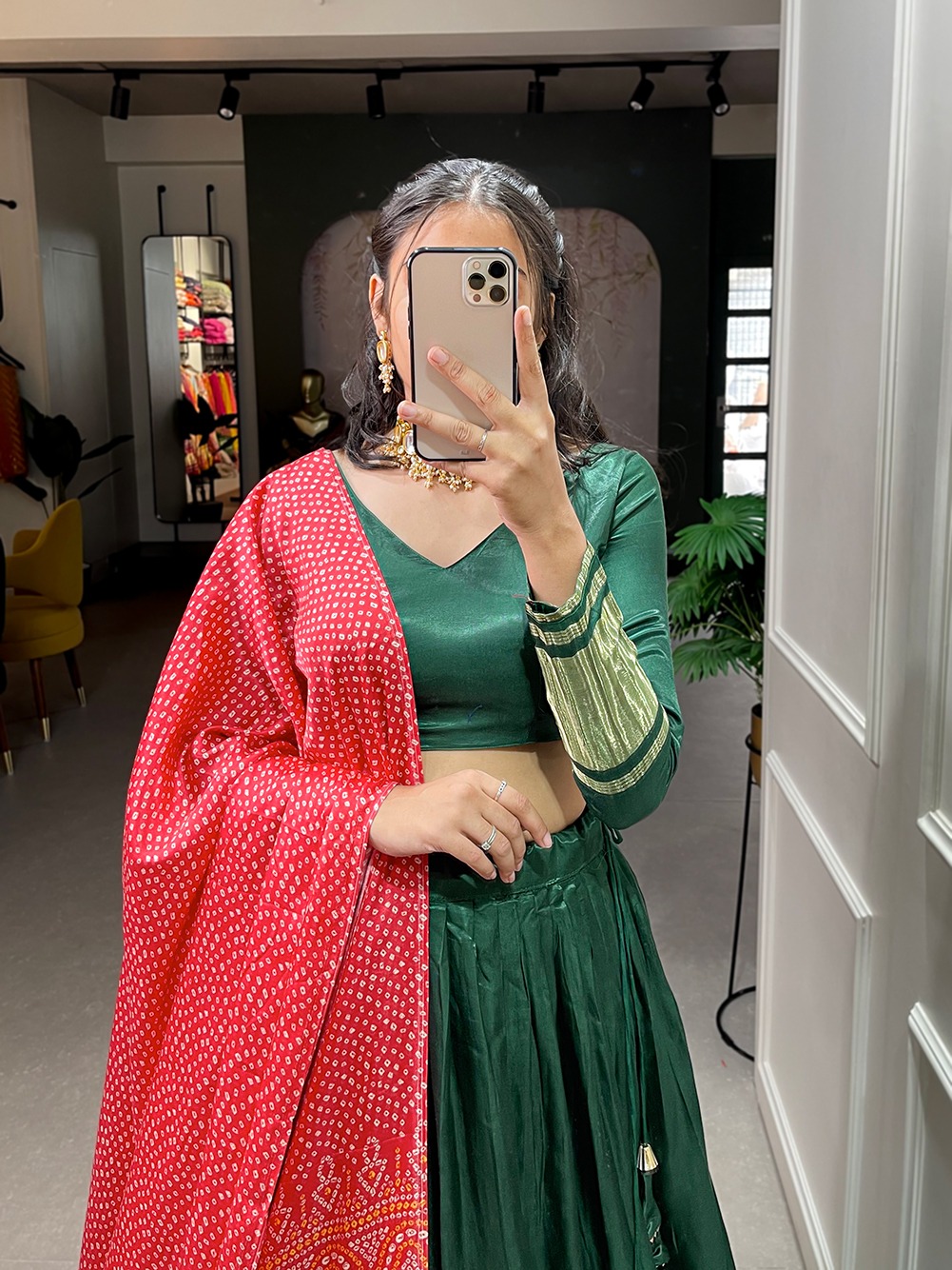 Green Gaji Silk Lagdi patta Lehenga Choli