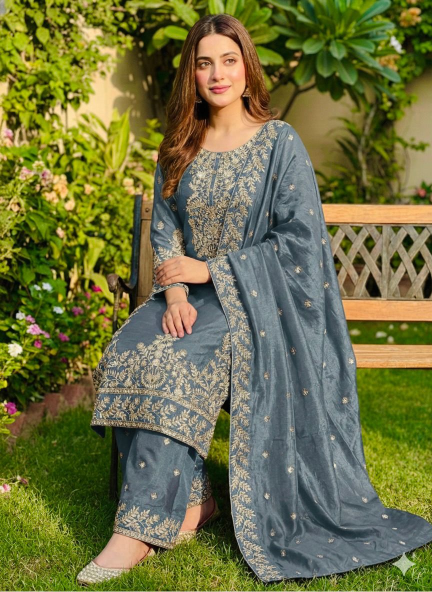 Grey Organza Silk With Sequence Work Salwar Suit