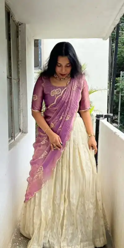 Lavender Fendy Silk Sequence Cut Work Lehenga Choli