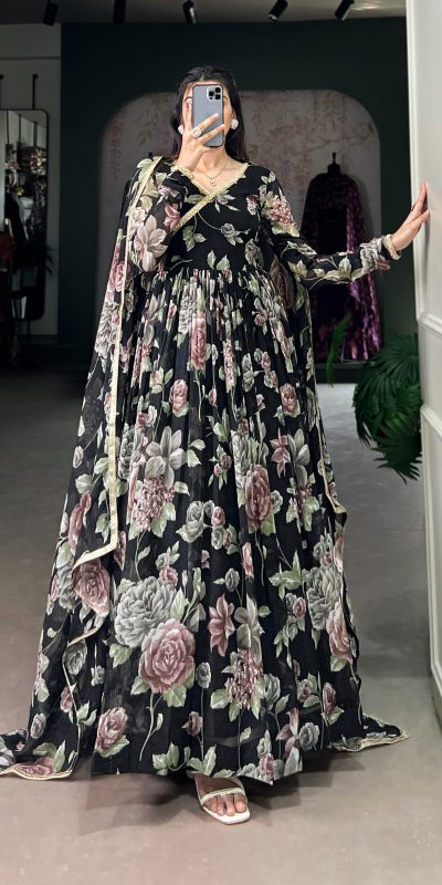 | Β FabricsΒ | Gown Fabric : Marbel Gown Work : Floral Print With Lace Touch Up Chest Size : Free Size Semi Stitched Sleeve Length : 30″ Length : 50″ Flair : 3.50 Meter Lining : Cotton (full up to bottom)Dupatta Fabric : Marble Dupatta Work : Floral Print With Lace Touch Up Dupatta Length : 2.30 Meter |