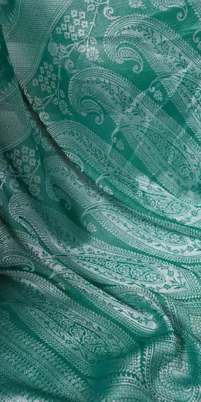 Firozi Nylon Georgette Zari Weaving Work Saree