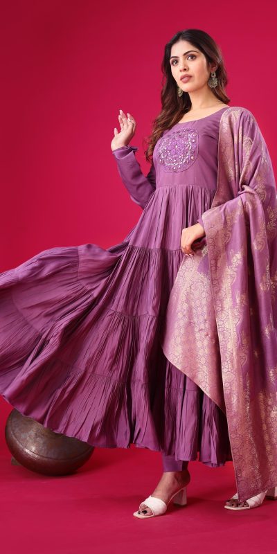72 reviews for Purple Roman Silk With Embroidery Sequence Work Anarkali Gown